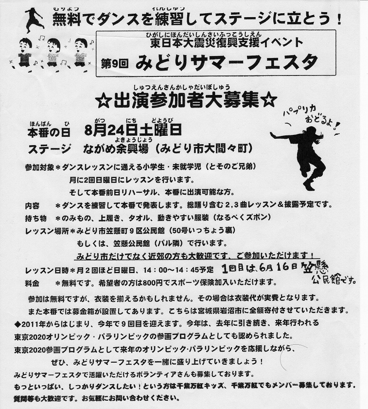 東日本大震災【千年希望の丘プロジェクト】支援 第16回みどりサマーフェスタ開催!