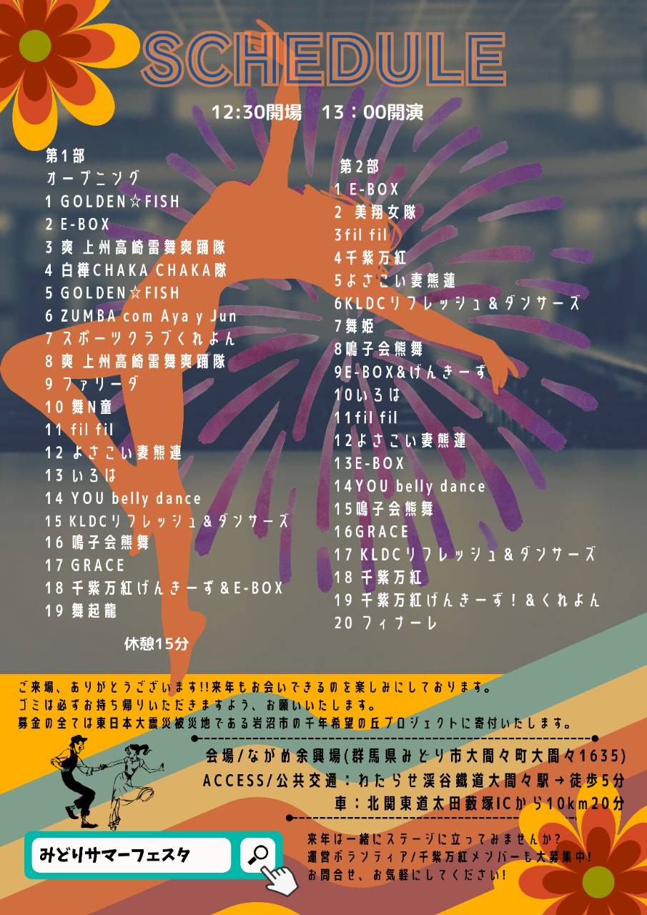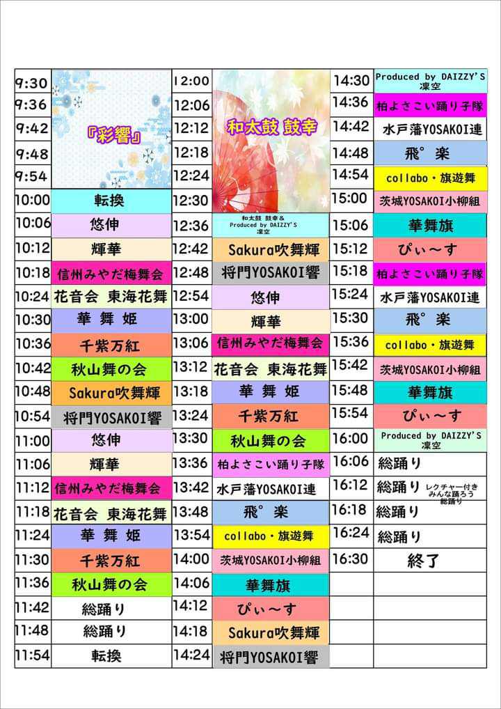 ステージ展開に関しては制限がなくなりましたのでコロナ前同様、1部、2部続けての開催とします。